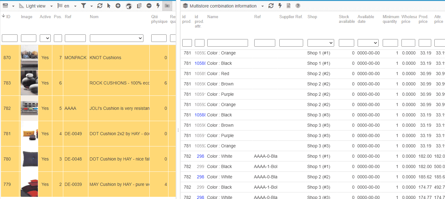 If you use it to edit products, your changes may not be displayed, as the same product may have different data (price, stock, description, etc.) from one shop to another. Store Commander cannot display all these variants at the same time, which can be misleading.
