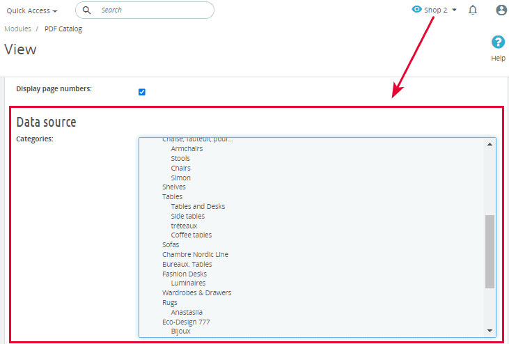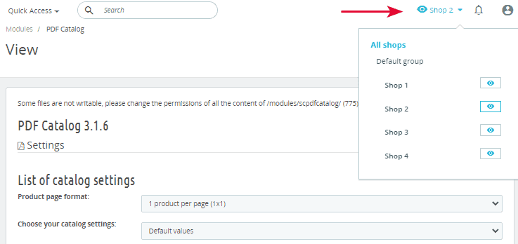 When working in multistore mode, you can create your various PDF catalog for each of your shops individually, or for all shops.