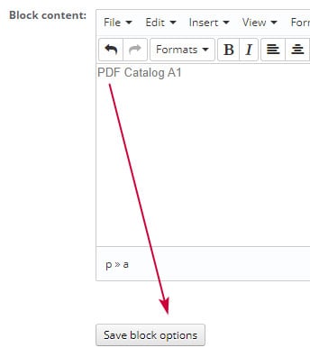 Within the PDF Catalog configuration page, you can setup a 'Block' on your front office to make your PDF catalog available for download by visitors on your shop.