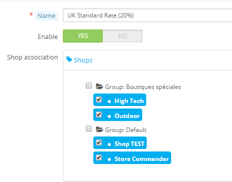 In Store Commander's interface, the VAT drop-down menu will only display the rules associated to the shop you are working on.