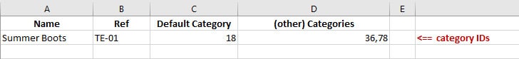 - default category: the main category the product will be associated to- categories: any other categories the product can be present in