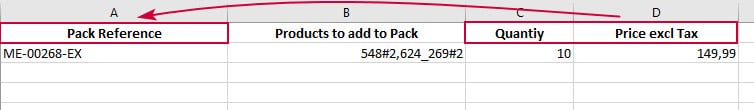 💡 In the same import, you could also set the number of packs you want to make available to sell, meaning the stock, as well as the price.Simply add these 2 columns to the CSV file :