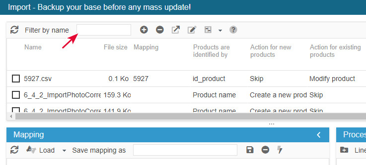 Once the file is loaded, you will find it in the top part of your import window, with the list of all import files.