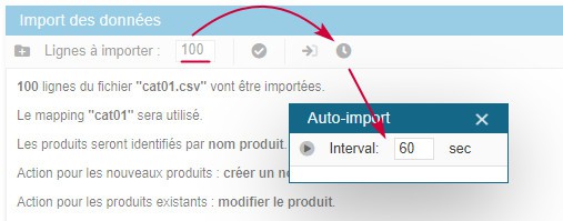 The auto-import allows you to space out the import process by setting a time interval, and thus import in batches of lines the GLOBAL FILE.