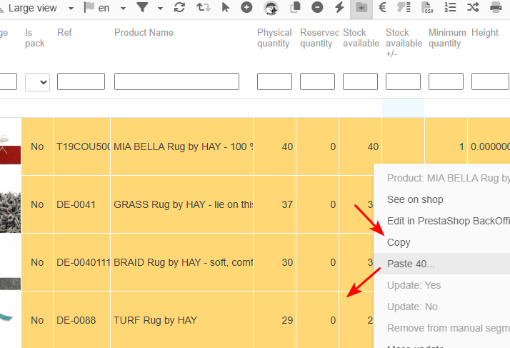 Indeed, with this option, you can apply modifications to dozens, hundreds of products in just a few clicks!