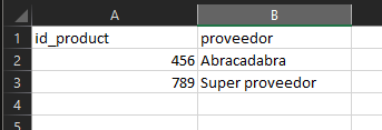 He aquí un ejemplo de archivo CSV para asociar sus proveedores a sus productos simples.