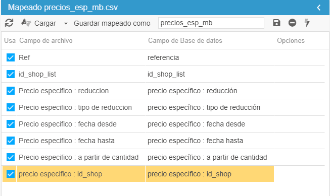 Desde la versión 2018-02-27 de Store Commander, hemos introducido un nuevo campo para la importación de creación de precios especiales en modo multitiendas: precio especial: id_shop