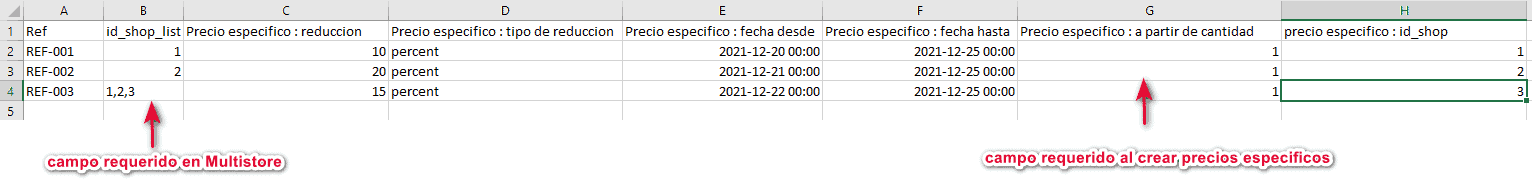 Tenga en cuenta que como siempre, el campo id_shop_list deberá estar también presente, como para cualquier importación en modo multitiendas.