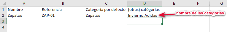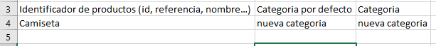 Si los productos que añade se encuentran en una sola categoría, entonces será necesario utilizar siempre el campo "categoría por defecto".
