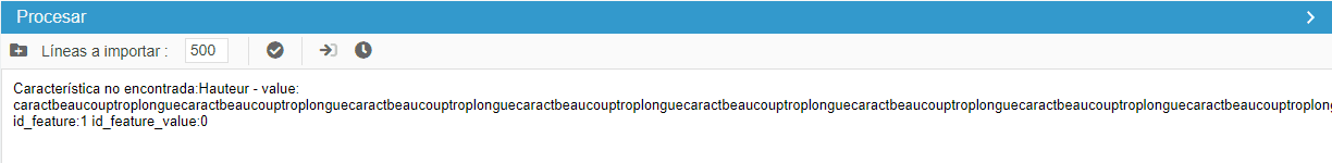 Si su importación no contiene ninguna etiqueta, significa que el producto en el que se interrumpe la importación (1ª línea del archivo TODO) utiliza una etiqueta con un número de caracteres superior al autorizado.