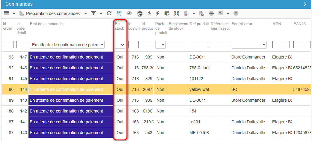 Visualiser si les produits sont en stock pour être expédiés