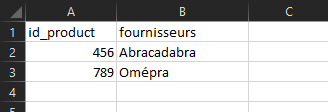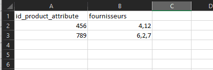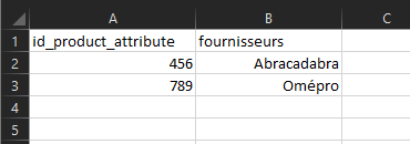 Voici un exemple de fichier CSV pour associer vos fournisseurs à vos déclinaisons.