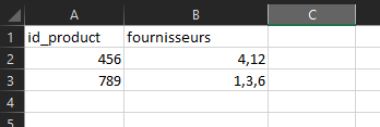 Voici un exemple de fichier CSV pour associer un fournisseur additionel à vos produits.