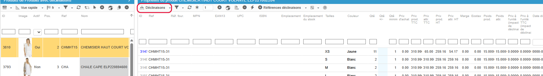 Cette grille vous permet d’avoir une visibilité complète de toutes les informations de vos déclinaisons au même endroit.