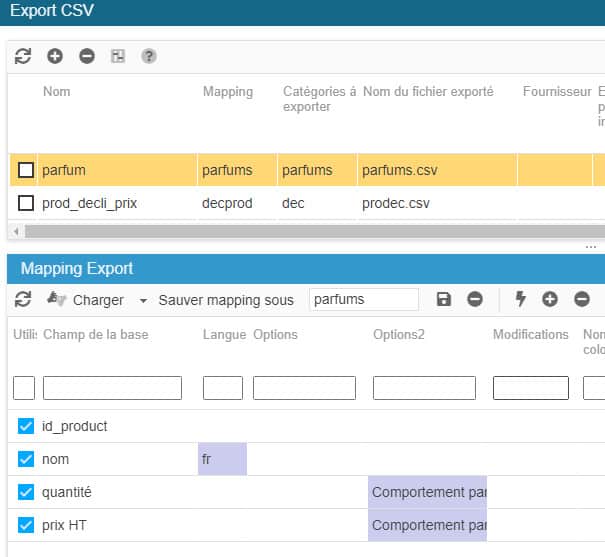 Vous pouvez aussi ajouter les champs 'quantité' et 'prix HT' à votre export, afin de les définir sur les nouvelles déclinaisons que vous allez créer.