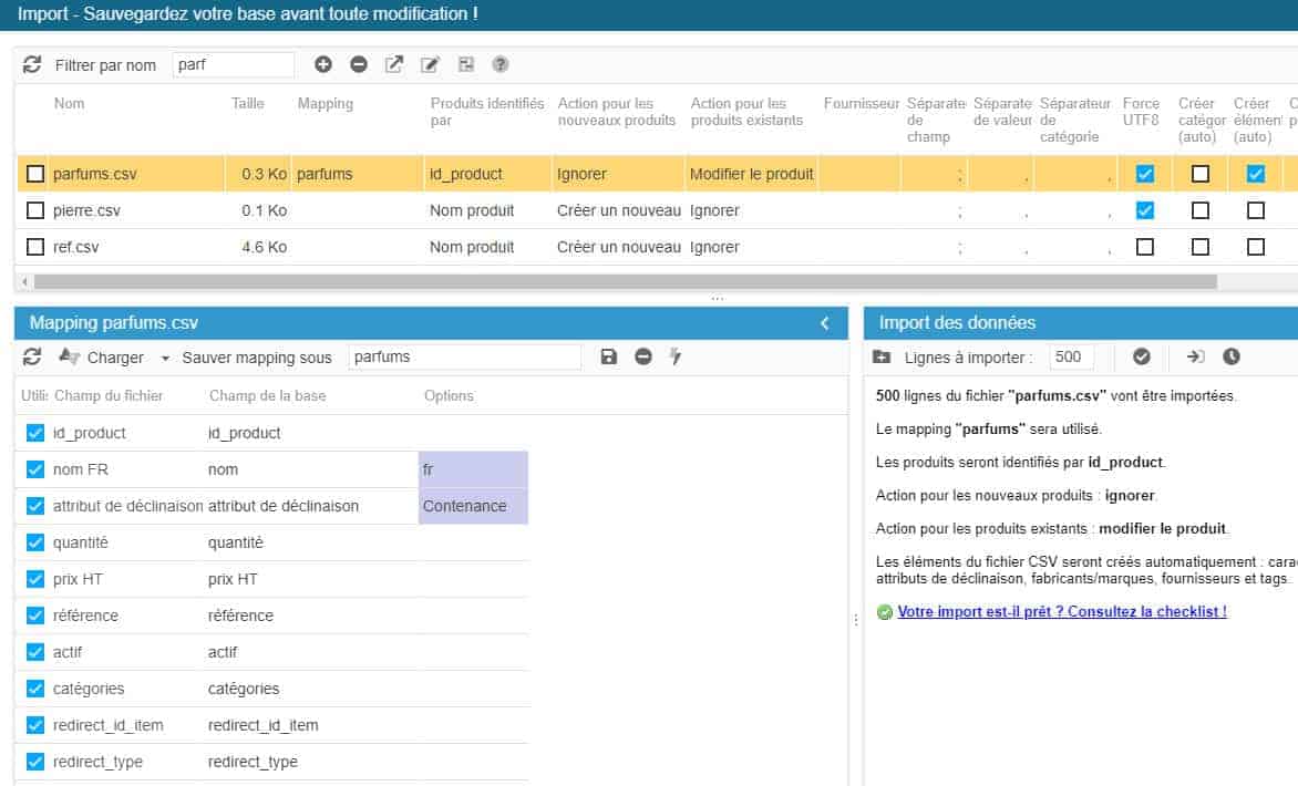 L’import csv