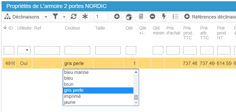 Il vous suffit maintenant d’ajuster les références, ean13, prix, ou toute autre information propre à ces nouvelles déclinaisons.
