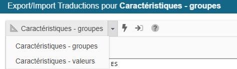 Et sur la barre d'outils, un menu déroulant qui vous permet de choisir les données que vous souhaitez traduire : les groupes ou les valeurs de caractéristiques