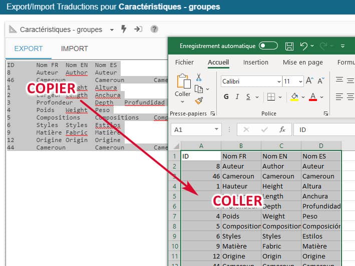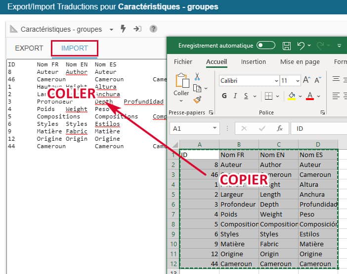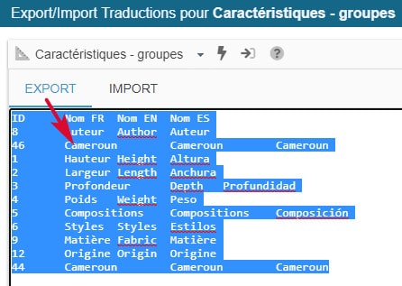 Grâce à l'outil d'export/import dédié aux caractéristiques, vous allez pouvoir traduire les noms des groupes et des valeurs de caractéristiques dans toutes les langues de la boutique très simplement et aussi très rapidement !