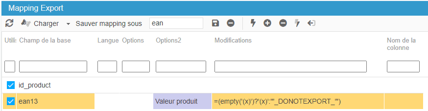 Pour le champ EAN, nous exportons les produits dont le code EAN est vide