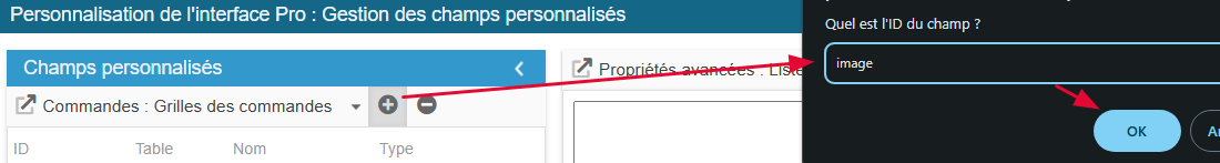 Cliquez sur l’icône d’ajout pour créer la ligne du nouveau champ et indiquez son ID image
