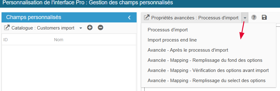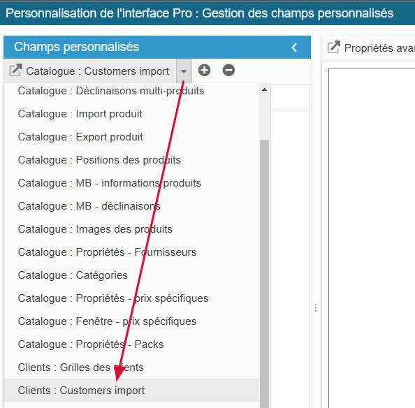 Ce champ sera ainsi disponible dans la liste des champs importables dans l’outil d’import Clients.