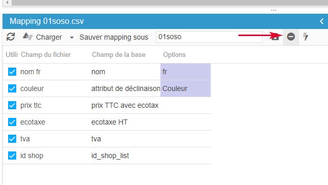 Pour supprimer des mappings d'import, vous pouvez charger le mapping concerné et cliquer sur l'icône de suppression :