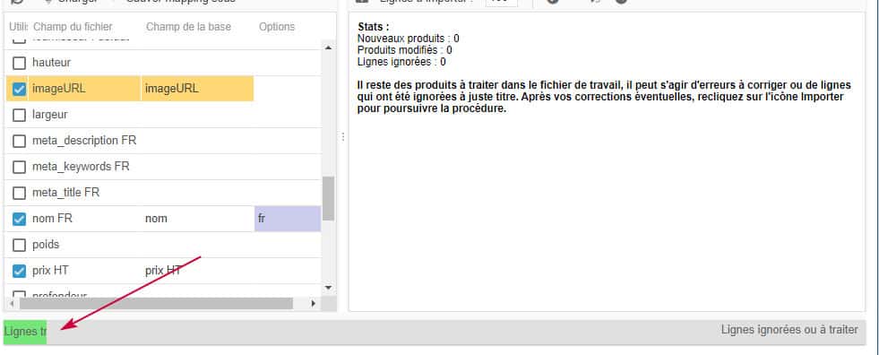 Celui-ci sera visible sur la première ligne du fichier, les lignes traitées correctement étant automatiquement supprimées.