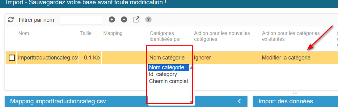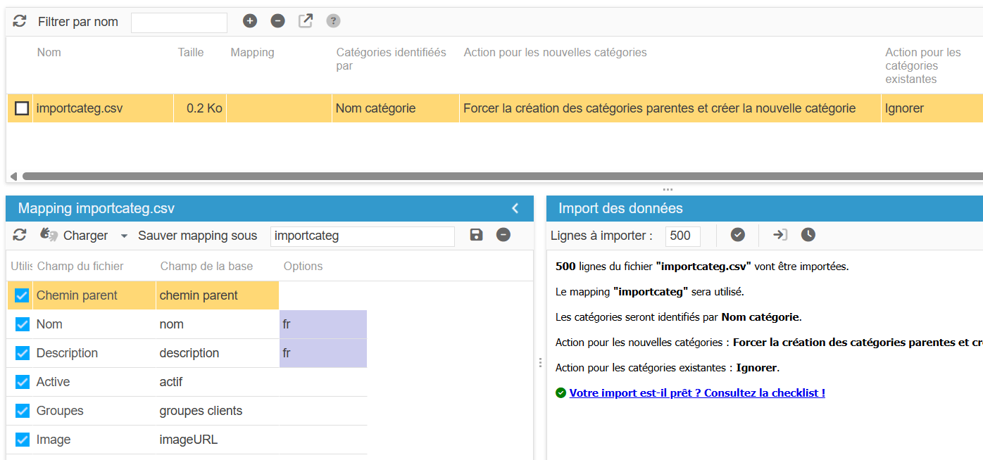 Et l'outil d'import csv dédié aux catégories vous permet de mettre à jour toutes les informations des catégories, ainsi que d'en créer de nouvelles.