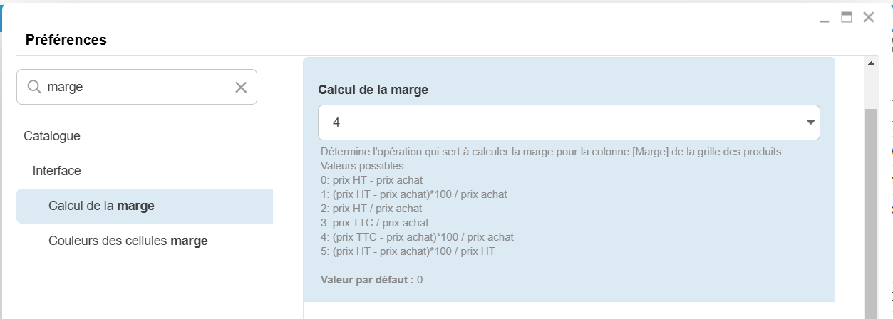 La formule définie pour la marge sera ainsi utilisée pour recalculer le prix TTC des produits sur lesquels vous allez modifier la valeur de marge.
