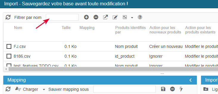 Vous le retrouvez ensuite dans la partie haute de votre fenêtre d'importation, dans la liste de tous les fichiers csv.