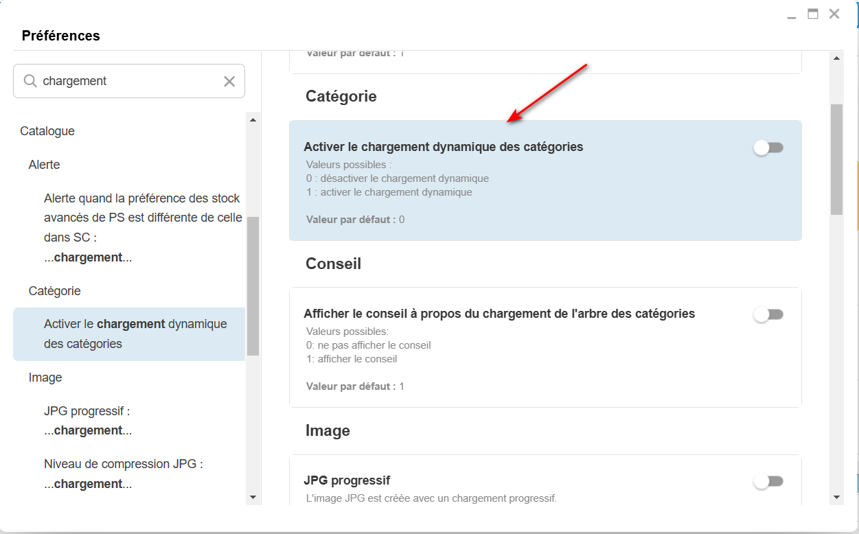 Il existe une option vous permet de charger vos catégories dynamiquement, très utile pour les boutiques avec une arborescence importante au niveau performance d'affichage.