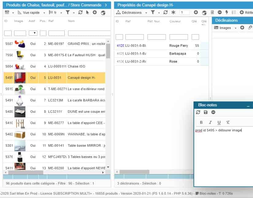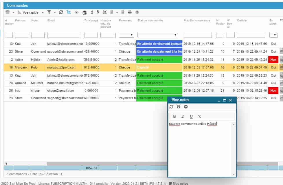 Store Commander met à disposition un bloc notes, accessible depuis toutes ses interfaces (Catalogue, Commandes, Clients, etc) car il se situe sur la barre d'état en bas de l'interface :