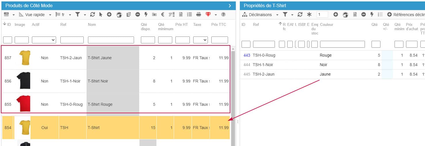 Vos produits possèdent des déclinaisons et vous souhaitez remplacer ces déclinaisons par des produits simples, par exemple le produit T-Shirt possède des déclinaisons Couleurs : Rouge, Vert, Bleu. Vous souhaitez remplacer ces déclinaisons Rouge, Vert, Bleu par 3 produits : T-Shirt Rouge, T-Shirt Vert, T-Shirt Bleu